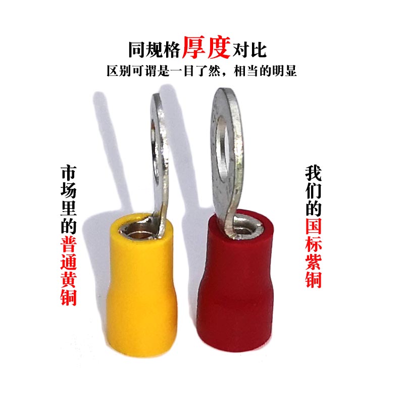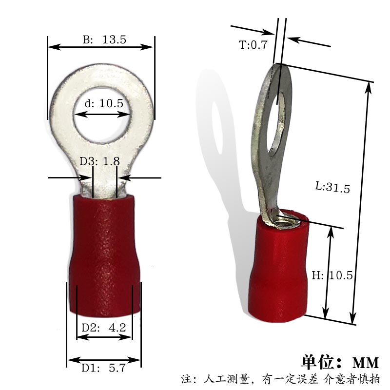 RV1 25-10 red copper O type round pre-insulated cold pressure wiring terminal copper wiring terminal wire ear connector RV1-10