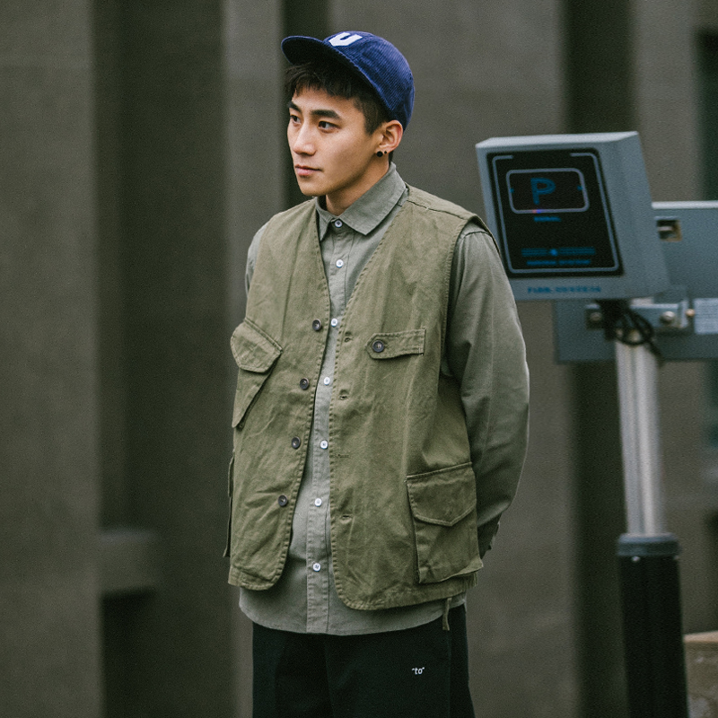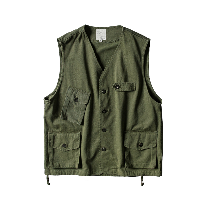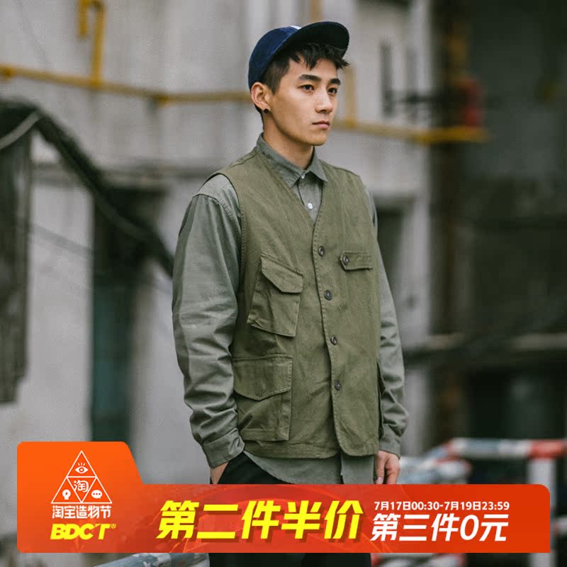 BDCT American military style tooling vest men ins functional trend loose V-neck green sleeveless vest jacket