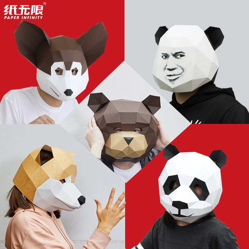 Creative panda headgear animal paper mold DIY material party masquerade half-face mask children's vibrato props