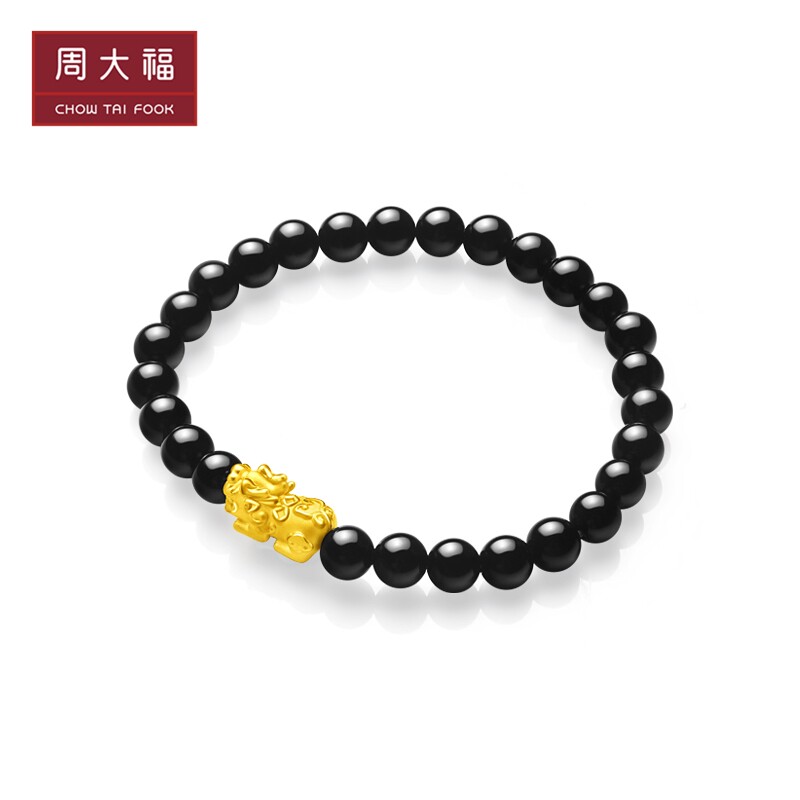 Chow Tai Fook Jewelry "Eight Directions Comes for Money" Pixiu 3D Pure Gold Gold Chalcedony Hand Bracelet EOR105 Selection