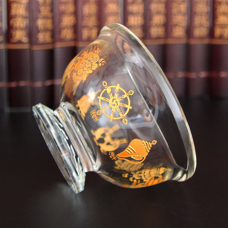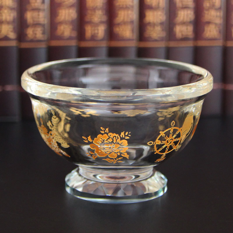 Zen meditation crystal eight treasures auspicious for cup bowl decoration for Buddha holy water cup Buddha hall supplies crystal water supply cup water purification cup