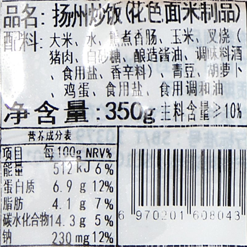 The Yangzhou fried rice of the frozen cuisine package 3500g