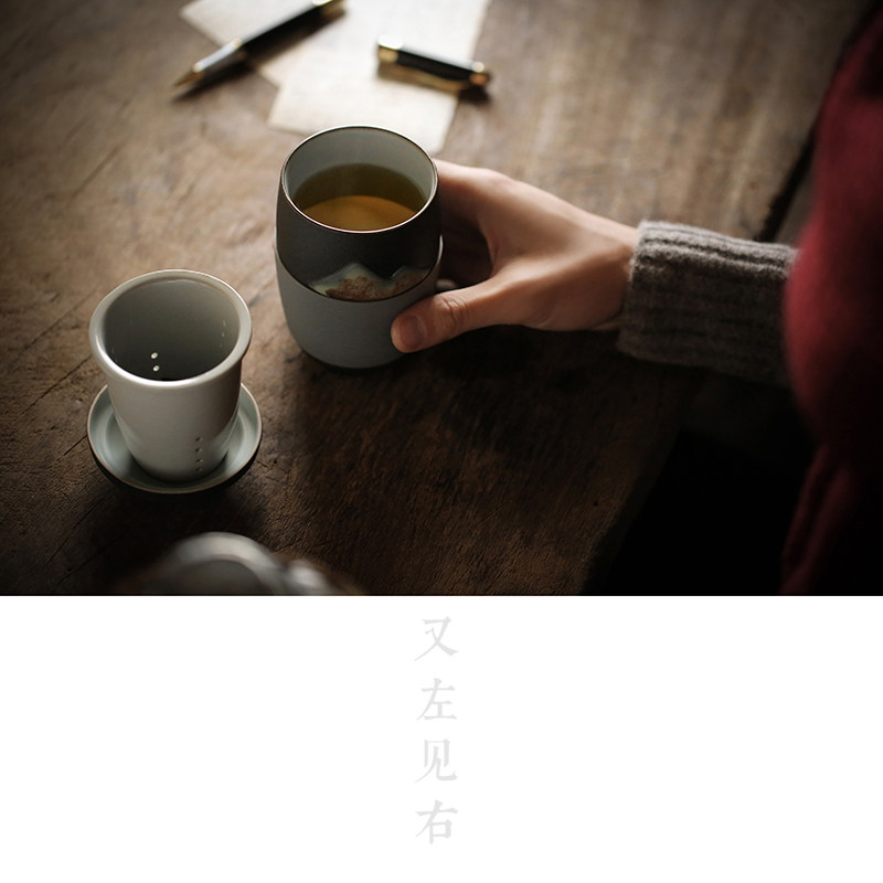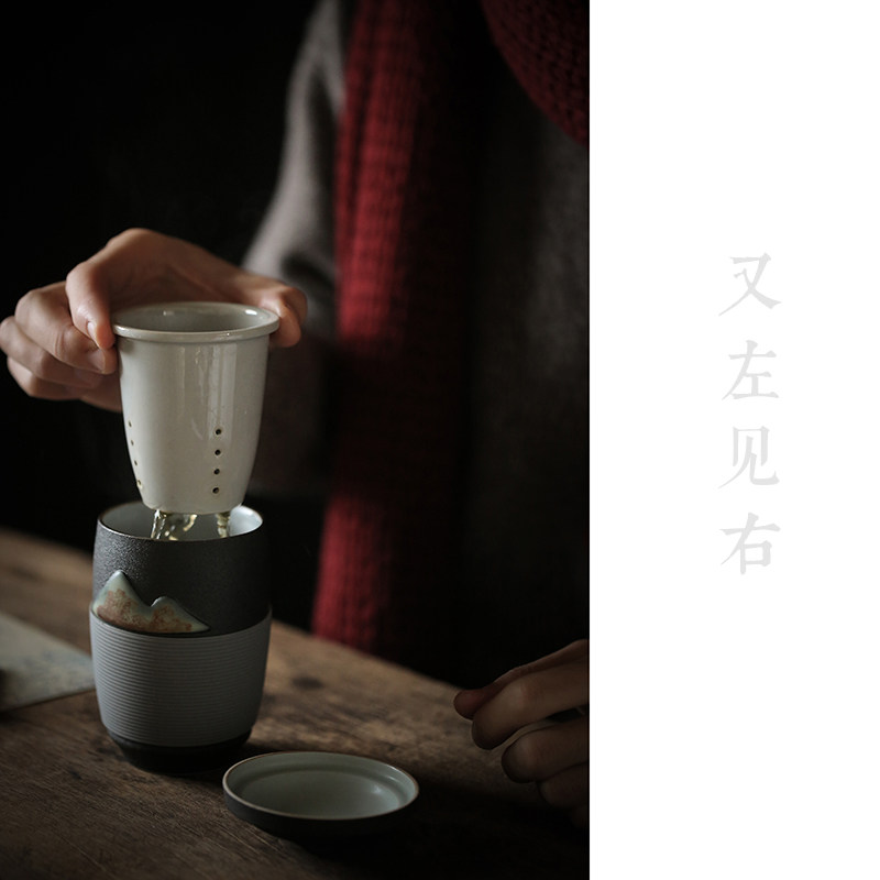 Day Style Ceramic Retro Mark Cup Tea Cup With Lid Tea Water Separation Filtration Office Tea Cup LOGO Custom