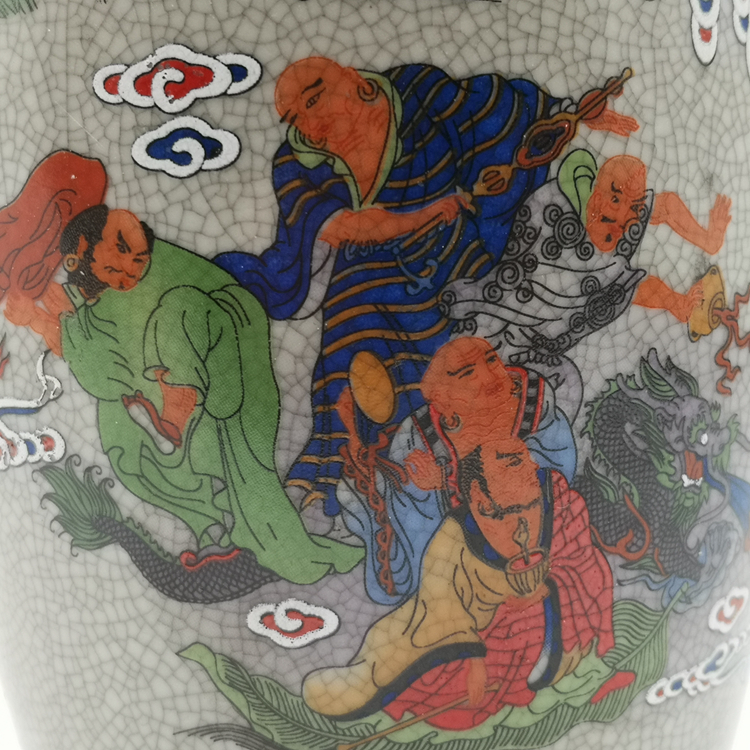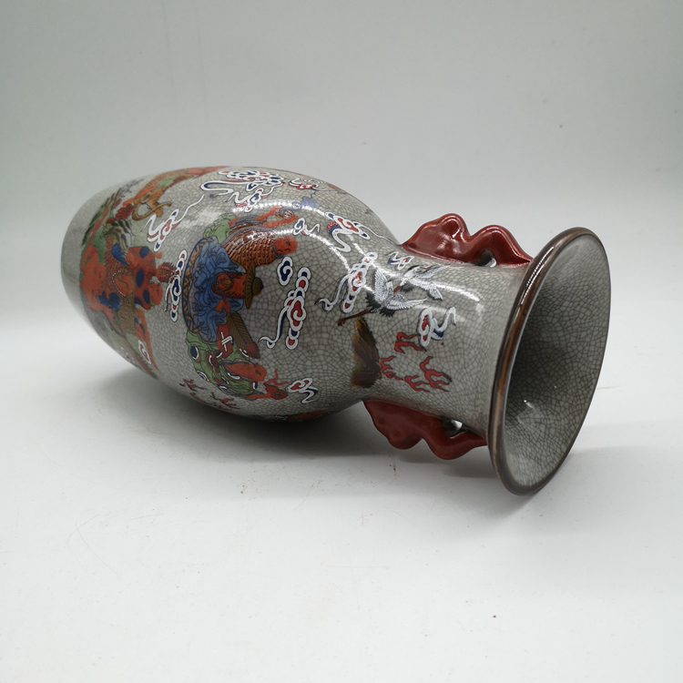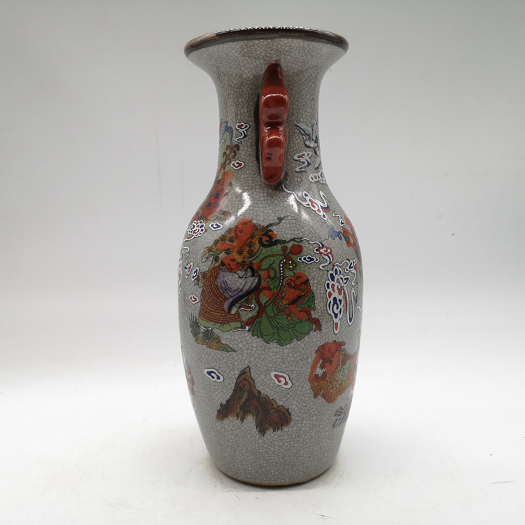 Clear Dry Lung Ice Crack Open Sheet Glazed Rohantou Double Ear Bottle Ancient Play Porcelain Home Xuanguan Decorative Swing