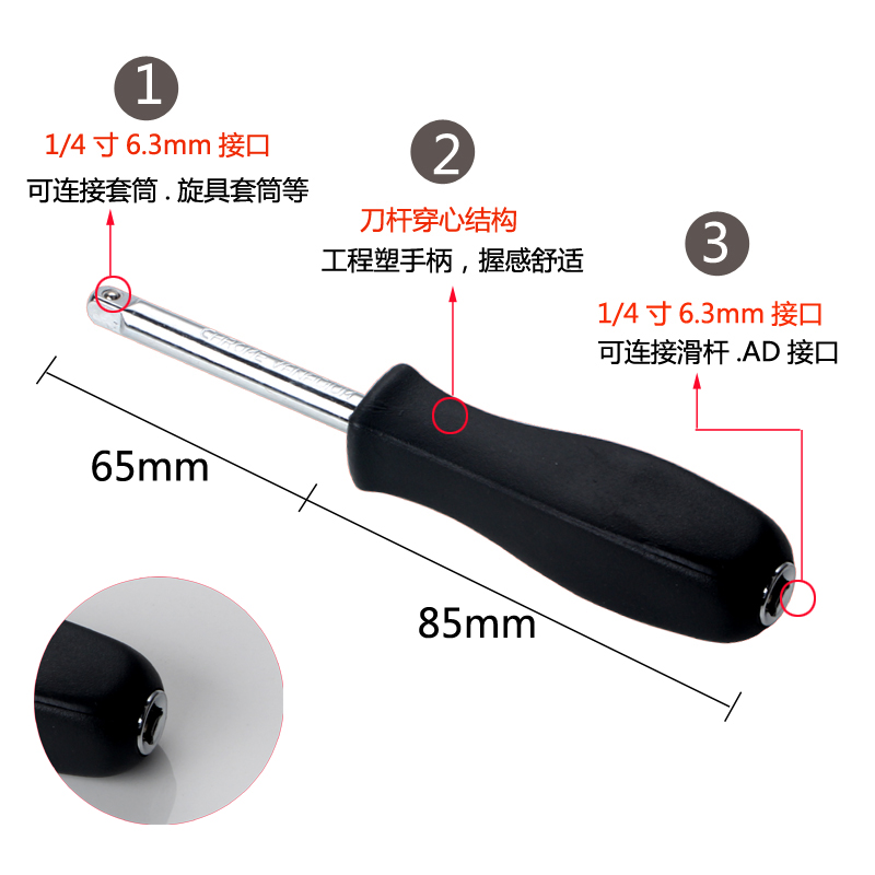 1 4 inch socket wrench handle 6 3mm rotary handle 1 4 black small square rod connecting rod afterburner screw socket wrench hardware tools