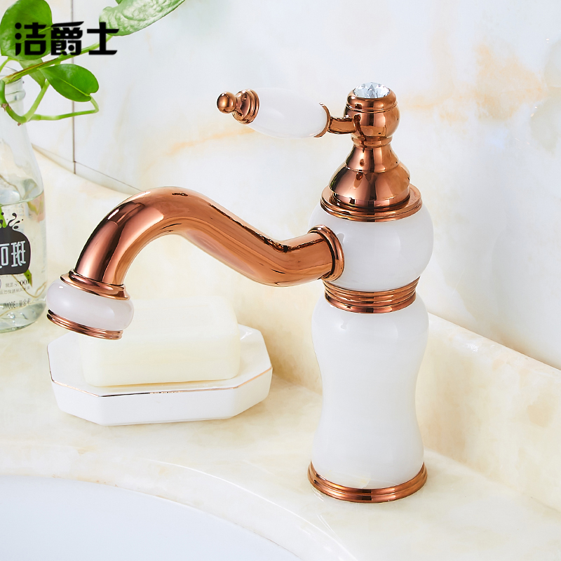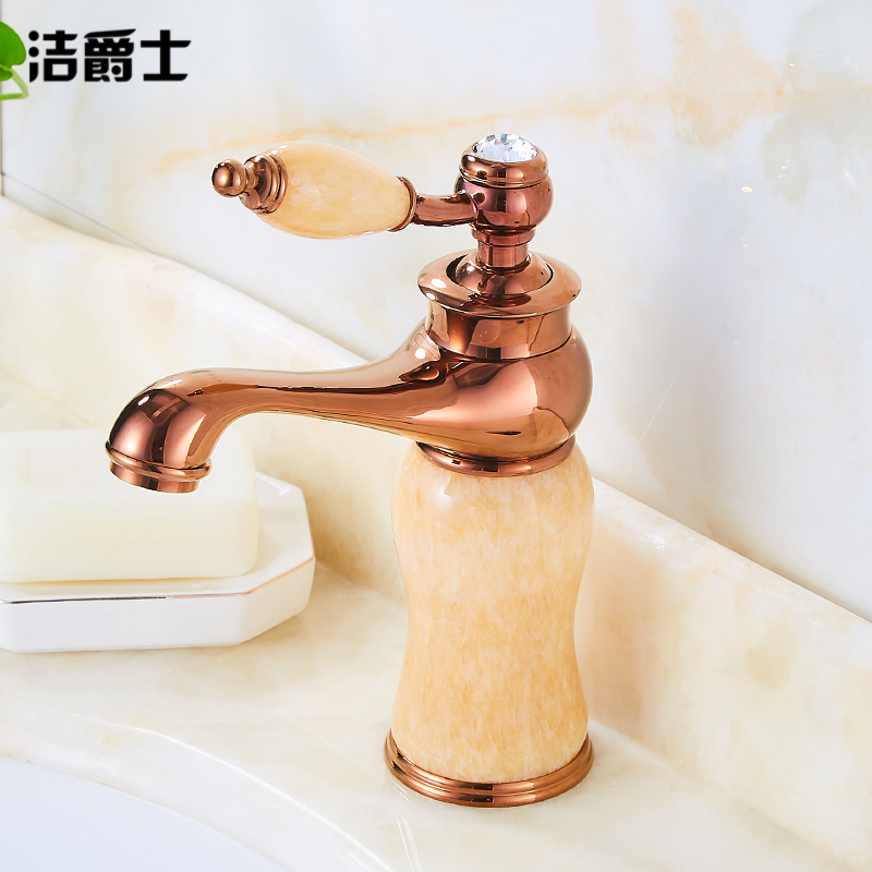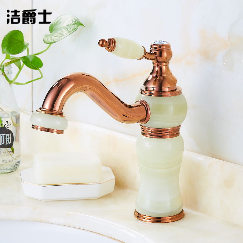 American copper natural jade color washbasin Hot and cold water faucet Rose Gold European antique washbasin faucet