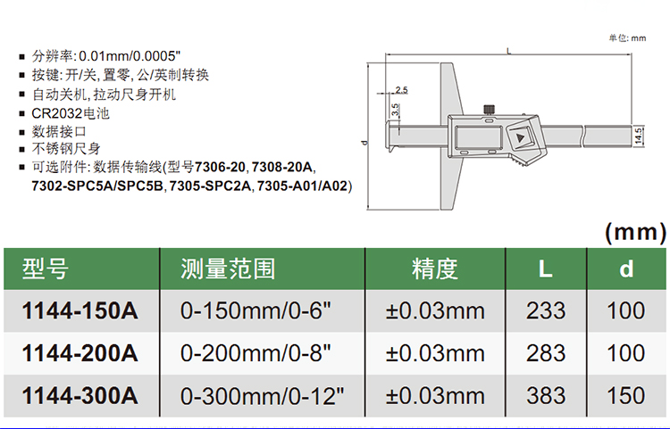 Insize double hook number height size 1144-150A0 010-150-200-300mm can be detected