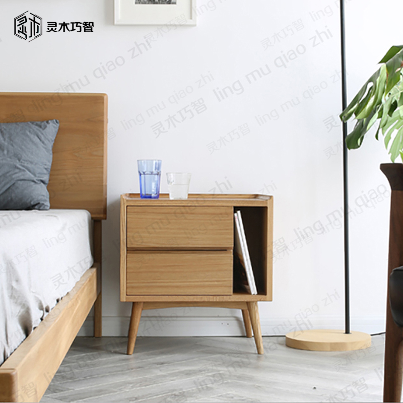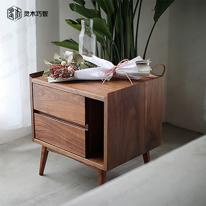 Custom-made Japanese-style small bookshelf modern minimalist oak bedside cabinet bedroom storage cabinet North American black walnut cabinet