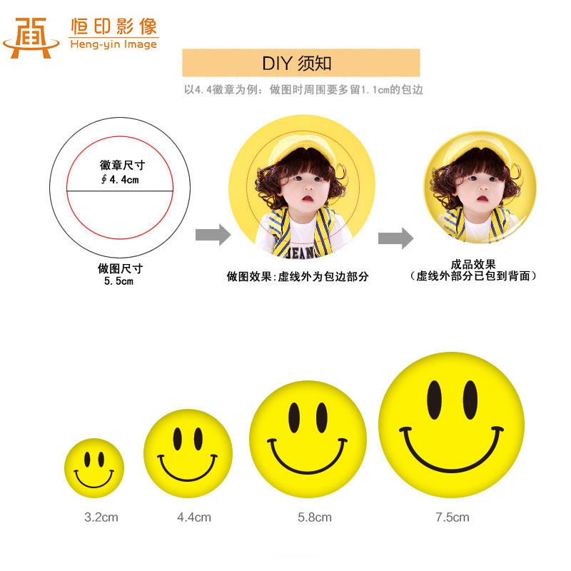 Hengyin image badge custom diy tinplate badge custom smiley face logo brooch medal class emblem make up the difference
