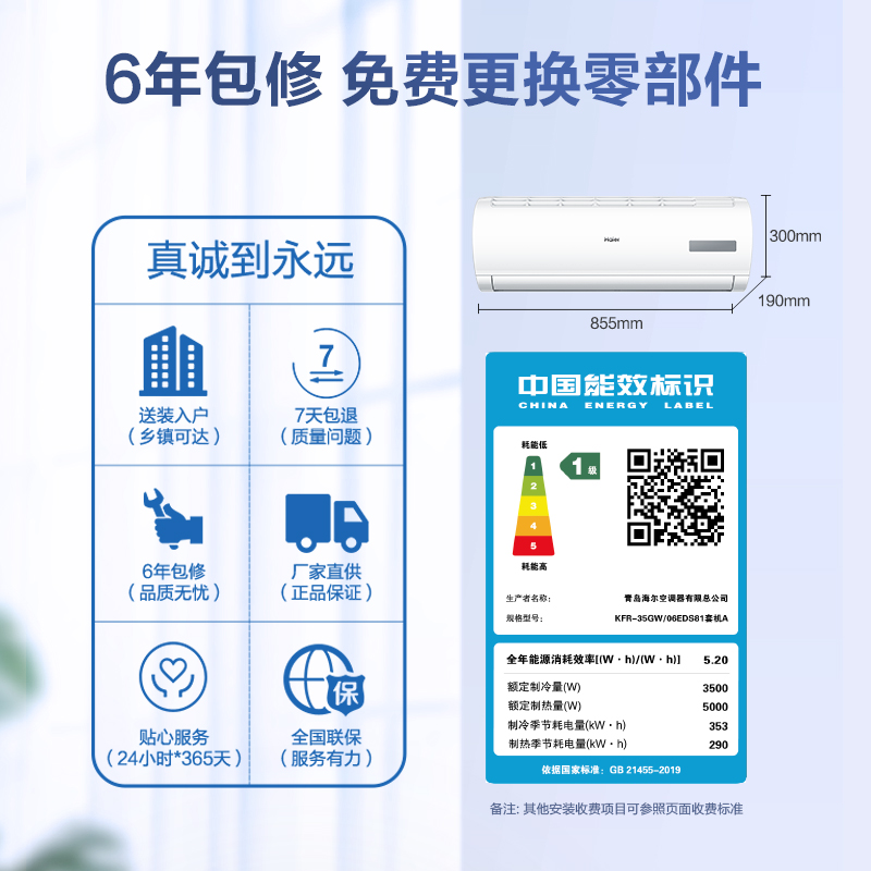 Haier cold-warm air conditioning Large 1 Pickup 1 5 Wall Wall-mounted Cold Air New Level Energy Efficiency Frequency Conversion Home Wall-mounted 01KBB81U1