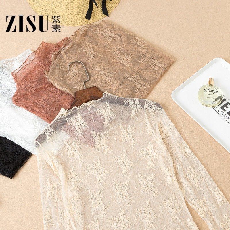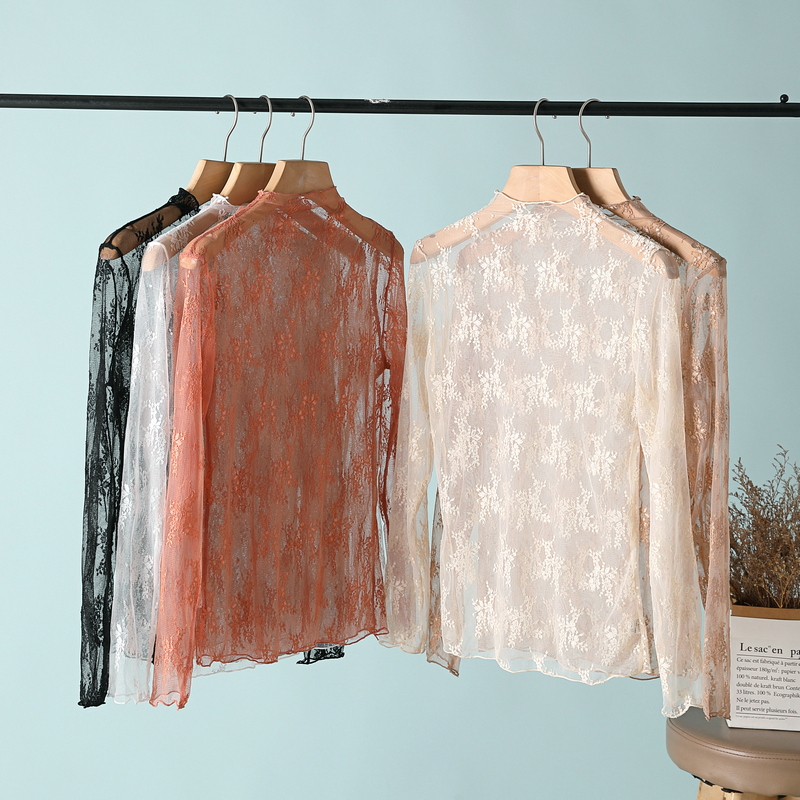 Lace bottoming shirt women's long-sleeved 2022 new fairy inner wear super fairy gauze sexy tulle spring and autumn mesh top
