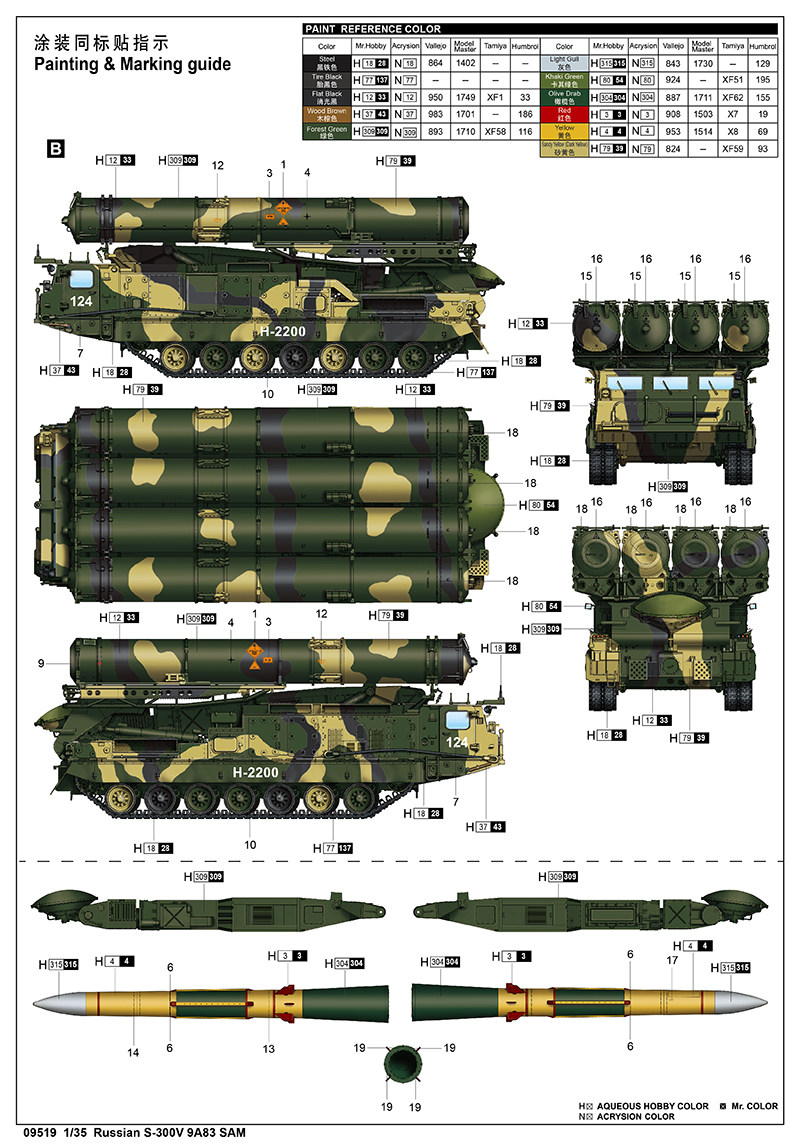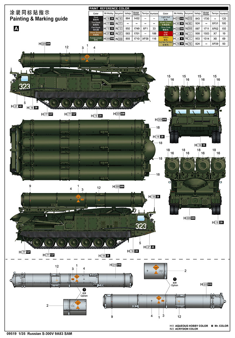 Trumpeter 09519 Assembled model 1 35 Russian S-300V 9A83 missile launch vehicle