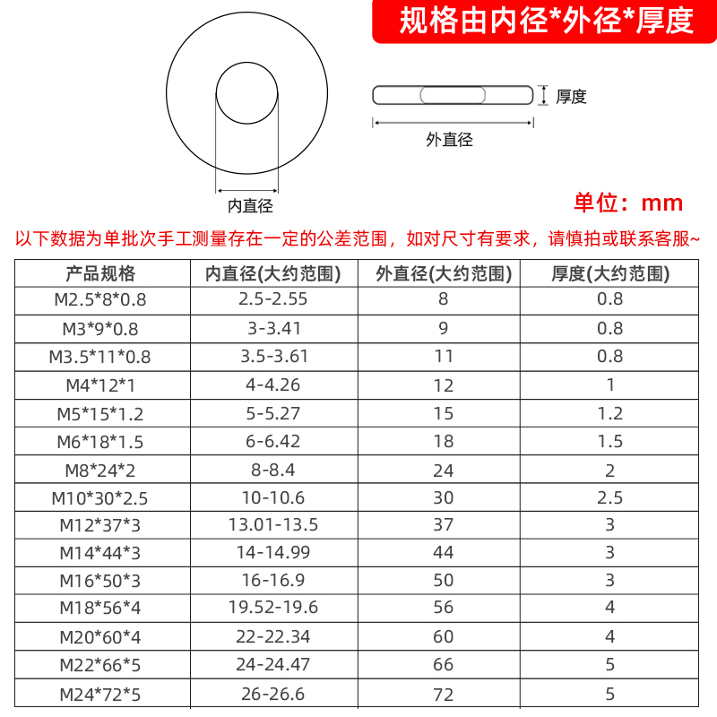 M2.5*6*0.5(100pcs) M2.5*7*0.5(100pcs) M3*5*0.5(100pcs) M3*7*0.8(100pcs) M3*9*1(100pcs) M3*10*0.8(100pcs) M4*8*1(100pcs) M4*12*1.5(50pcs) M4*14*0.8(50pcs) M4*16*0.8(50pcs) M4*25*1.5(15pcs) M5*10*1( 100pcs) M5*12*0.5(50pcs) M5*12*1.2(50pcs) M5*18*1.2(30pcs) M6*20*1(20pcs) M6*20*1.5(20pcs) M6*20*2(10pcs) M6*24*1.2(10pcs) M6*30*1.5(10pcs) M6*35*2(2pcs) M1.6*4*0.3(200pcs) M2*4*0.3(100pcs) M2*5*0.5( 100pcs) M2*4.5*0.5(100pcs) M2*4.5*0.3(100pcs) M2.5*8*0.8(100pcs) M3*6*0.5(100pcs) M3*6*1(100pcs) M3*7*0.5(100pcs) M3*7*1(100pcs) M3*8*0.5(100pcs) M3*8*0.8(100pcs) M3*9*0.8(100pcs) M3*10*1(100pcs) M3*12* 0.8(50pcs) M3*12*1(50pcs) M3*14*0.8(50pcs) M3*14*1(50pcs) M3*15*0.8(50pcs) M3*16*1(50pcs) M3*20*1(20pcs) M3.5*6.5*0.5(50pcs) M3.5*8*0.5(100pcs) M3.5*8*0.8(100pcs) M3.5*9*0.8(100pcs) M3.5*11*0.8(50pcs) M3.5*12*1(50pcs) M4*7*0.5(100pcs) M4*7*1(100pcs) M4*8*0.5(100pcs) M4*8*0.8(100pcs) M4*9*0.5(100pcs) M4*9*0.8(100pcs) M4*9*1(100pcs) M4*9*1.5(100pcs) M4*10*0.5(100pcs) M4*10*0.8(50pcs) M4*10*1(50pcs) M4*10*1(50pcs) M4* 12*0.8(50pcs) M4*12*1(50pcs) M4*12*1.2(50pcs) M4*14*1(50pcs) M4*16*1(50pcs) M4*20*1.2(20pcs) M4*30*1.5(15pcs) M5*9*1(100pcs) M5*10*0.5(100pcs) M5*10*0.8(100pcs) M5*10*1.2(100pcs) M5*10*1.5(100pcs) M5*10* 2(20pcs) M5*12*0.8(100pcs) M5*12*1(50pcs) M5*12*1.5(50pcs) M5*12*2(20pcs) M5*14*1.2(50pcs) M5*14*1.5(20pcs) M5*15*1(50pcs) M5*15*1.2(40pcs) M5*15*1.5(30pcs) M5*15*2(50pcs) M5*16*1(30pcs) M5*18*1(20pcs) M5* 18*1.5(20pcs) M5*18*2(30pcs) M5*20*1(20pcs) M5*20*1.2(20pcs) M5*20*1.5(30pcs) M5*25*1.5(10pcs) M5*30*1.5(5pcs) M5*30*2(5pcs) M6*9*0.5(50pcs) M6*10*0.3(50pcs) M6*10*0.5(50pcs) M6*10*1(100pcs) M6*11*1.5( 50pcs) M6*12*0.5(50pcs) M6*12*0.8(100pcs) M6*12*1(100pcs) M6*12*1.2(100pcs) M6*12*1.5(50pcs) M6*12*2(20pcs) M6*12.5*0.8 (50pcs) M6*12.7*1.5(30pcs) M6*13*1(50pcs) M6*14*1.2(50pcs) M6*14*1.5 (50pcs) M6*16*1(50pcs) M6*16*1.5(50pcs) M6*16*2(20pcs) M6*17*3(30pcs) M6*18*1.2(30pcs) M6*18*1.5(30pcs) M6*18*2(20pcs) M6*18*3(10pcs) M6*19*1.2(20pcs) M6*22*1(20pcs) M6*22*1.5(20pcs) M6*22*2 (20pcs) M6*24*1.5(10pcs) M6*25*1.5(20pcs) M6*25*2(10pcs) M6*30*2(10pcs) M6*30*3(5pcs) M6*40*2(2pcs) M8*12*0.5(50pcs) M8*12*1 (50pcs) M8*13*1(50pcs) M8*13*1.5(50pcs) M8*14*0.1(50pcs) M8*14*14*1 (50pcs) M8*15*1.5(50pcs) M8*16*0.5(50pcs) M8*16*1(50pcs) M8*16*1.2(50pcs) M8*16*2(20pcs) M8*17*1(30pcs) M8*18*1(30pcs) M8*18*1.2(20pcs) M8*18*1.5(20pcs) M8*18*18*2(20pcs) M8*19*1(50pcs) M8*20* 1.5(20pcs) M8*20*2(20pcs) M8*21*1.5(10pcs) M8*21*4(20pcs) M8*22*1.2(20pcs) M8*22*2(20pcs) M8*22*23*2(10pcs) M8*24*1.5(20pcs) M8*24*2(20pcs) M8*25*1.5(20pcs) M8*25*2(20pcs) M8*25*3(10pcs) M8* 28*3(5pcs) M8*30*1(10pcs) M8*30*1.5(10pcs) M8*30*2(5pcs) M8*32*1.5(10pcs) M8*35*2(5pcs) M8*40*0.5(5pcs) M8*40*1.5(5pcs) M8*40*2(5pcs) M8*55*2(1pcs) M10*14*0.5(50pcs) M10*16*0.5(50pcs) M10*16*0.5(50pcs) M10* 16*1(50pcs) M10*18*0.5(50pcs) M10*18*1(50pcs) M10*18*1.5(50pcs) M10*20*0.5(50pcs) M10*20*1(50pcs) M10*20*1.2(50pcs) M10*20*1.5(50pcs) M10*20*2(50pcs) M10*22*1.5(20pcs) M10*22*2(20pcs) M10*22*3(10pcs) M10*24*2(10pcs) M10*24*3(10pcs) M10*25*1.5(20pcs) M10*25*2(10pcs) M10*25*4(10pcs) M10*27*2(10pcs) M10*30*1.5(10pcs) M10*30*2(5pcs) M10*30*2.5(5pcs) M10*30*3(5pcs) M10*30*4(5pcs) M10*34*3(5pcs) M10*35*2( 2pcs) M10*36*2(5pcs) M10*40*1.5(5pcs) M10*40*2(5pcs) M10*40*3(2pcs) M10*50*3(2pcs) M12*16*0.5(50pcs) M12*16*1(50pcs) M12*18*0.5(50pcs) M12*18*1(30pcs) M12*20*0.5(50pcs) M12*20*1(20pcs) M12*20*2(20pcs) M12* 22*0.5(20pcs) M12*24*1.2(20pcs) M12*24*1.5(20pcs) M12*24*2(20pcs) M12*24*2.5(20pcs) M12*24*3(5pcs) M12*24*3.5(5pcs) M12*26*2(20pcs) M12*27*2.5(5pcs) M12*30*2(10pcs) M12*30*6(5pcs) M12*32*2(10pcs) M12*32* 2.5(5pcs) M12*32*3(10pcs) M12*37*2(5pcs) M12*37*3(5pcs) M12*40*2(2pcs) M12*40*2.5(2pcs) M12*40*3(2pcs) M12*44*4(2pcs) M12*50*3(2pcs) M14*20*0.5(20pcs) M14*20*1(20pcs) M14*24*2.5(10pcs) M14*28*1(20pcs) M14* 28*1.2(20pcs) M14*28*1.5(20pcs) M14*28*2(20pcs) M14*28*2.5(20pcs) M14*30*2.5(5pcs) M14*35*2(2pcs) M14*35*3(1pcs) M14*36*2.5(5pcs) M14*36*6(2pcs) M14*44*3(2pcs) M14*45*2.5(1pcs) M14*50*4(2pcs) M16*20*0.5 (20pcs) M16*20*1(20pcs) M16*22*0.5(20pcs) M16*22*1(20pcs) M16*28*2.5(10pcs) M16*30*1(20pcs) M16*30*2(20pcs) M16*30*3(10pcs) M16*32*1.5(10pcs) M16*32*3(5pcs) M16*40*3(2pcs) M16*50*3(2pcs) M16*50*3(2pcs) M16* 56*5(2pcs) M18*26*0.5(10pcs) M18*26*1(10pcs) M18*30*3(5pcs) M18*34*2(10pcs) M18*36*3(2pcs) M18*44*8(2pcs) M18*45*3(2pcs) M18*55*3(1pcs) M18*56*4(2pcs) M18*60*5(2pcs) M20*30*0.5(10pcs) M20* 30*1(10pcs) M20*34*3(5pcs) M20*37*1.5(10pcs) M20*37*2(10pcs) M20*37*3(10pcs) M20*40*3(2pcs) M20*44*8(2pcs) M20*50*3(1pcs) M20*60*3(1pcs) M20*60*4(1pcs) M20*72*6(1pcs) M22*37*3(5pcs) M22*39*3 (5pcs) M22*45*3(2pcs) M22*50*8(2pcs) M22*66*5(1pcs) M22*80*6(1pcs) M24*39*4(2pcs) M24*44*3(5pcs) M24*44*4(5pcs) M24*50*4(1pcs) M24*50*10(1pcs) M24*72*5(1pcs) M24*85*6(1pcs) M27*50*4(5pcs) M27*55*4(1pcs) M27* 85*6 (1 m30*56*4(2 m30*60*4(1 m30*68*10(1 m30*92*6(1 m33*50*1.5)(2 m33*60*5(2 m33*65*5)(1 M36*66*5(2 M36*70*5(1 M39*72*6(1 M42*78*8(1 M45*85*8(1) M48*92*8(1) M52*98*8(1 pcs.) )