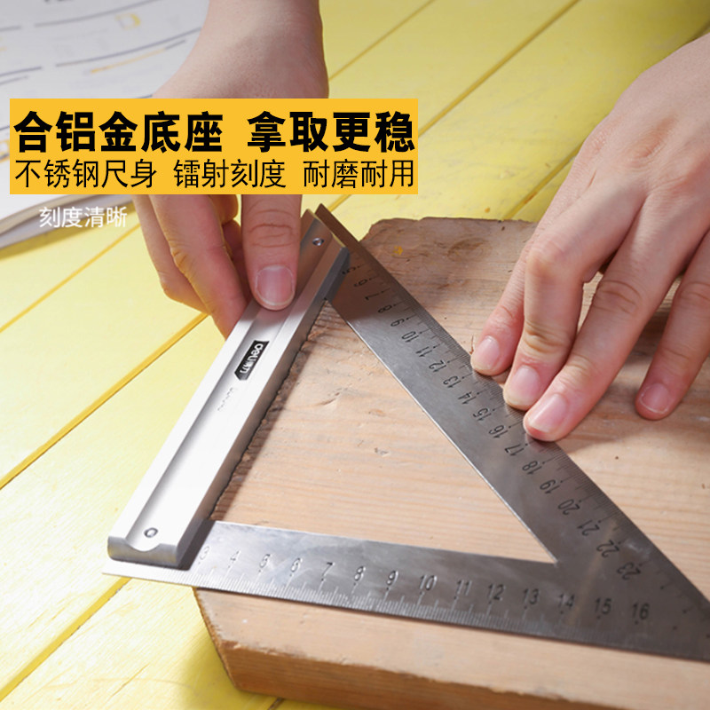 Deli triangle ruler stainless steel multi-function large size triangle board high precision woodworking right angle ruler 45 ° angle ruler