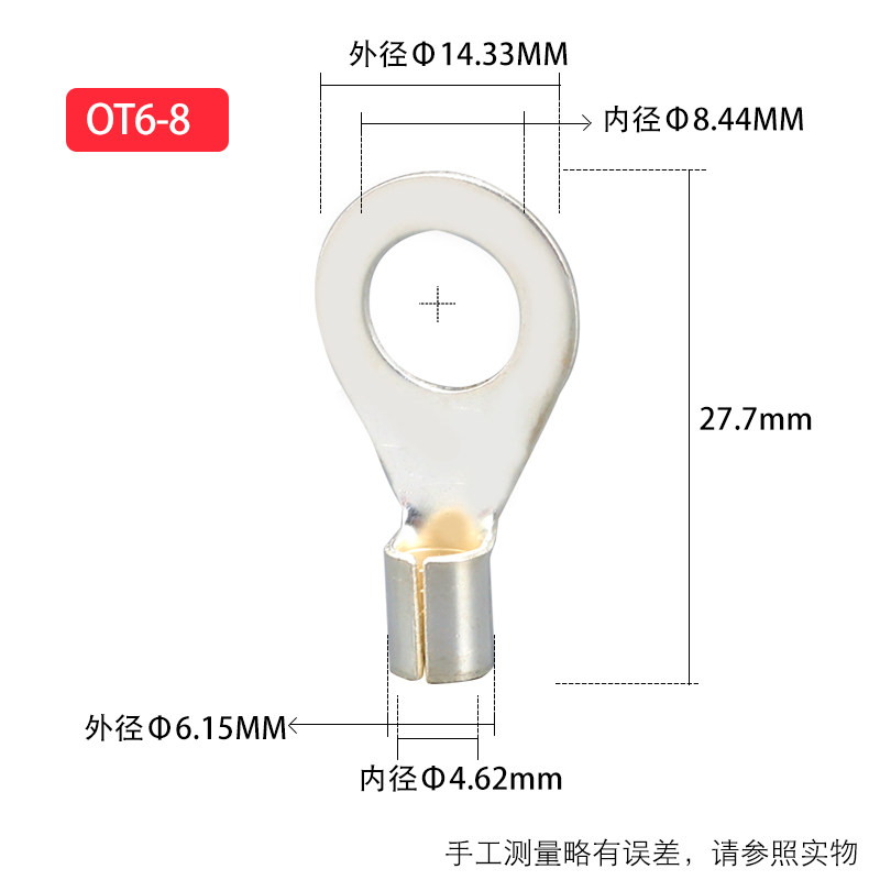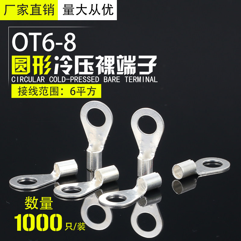 OT6-8 cold pressed bare terminal wiring pressure wire terminal round O-type copper wiring terminal copper wire ear connector wire joint