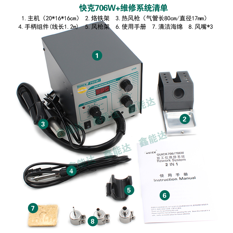 QUICK 706W two-in-one maintenance system Digital constant temperature electric soldering iron QUICK soldering station desoldering station hot air gun grab