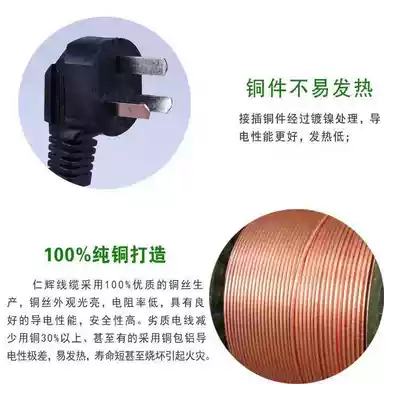 Pure copper 1 square rice cooker electric rice cooker wok power cord three hole high power hot quick cooking pot computer power cord