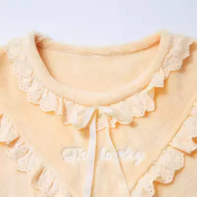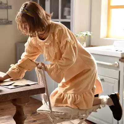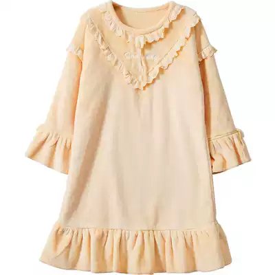 Milk yellow coral velvet nightgown female winter sweet cute long version of flannel plush soft cute princess wind little man