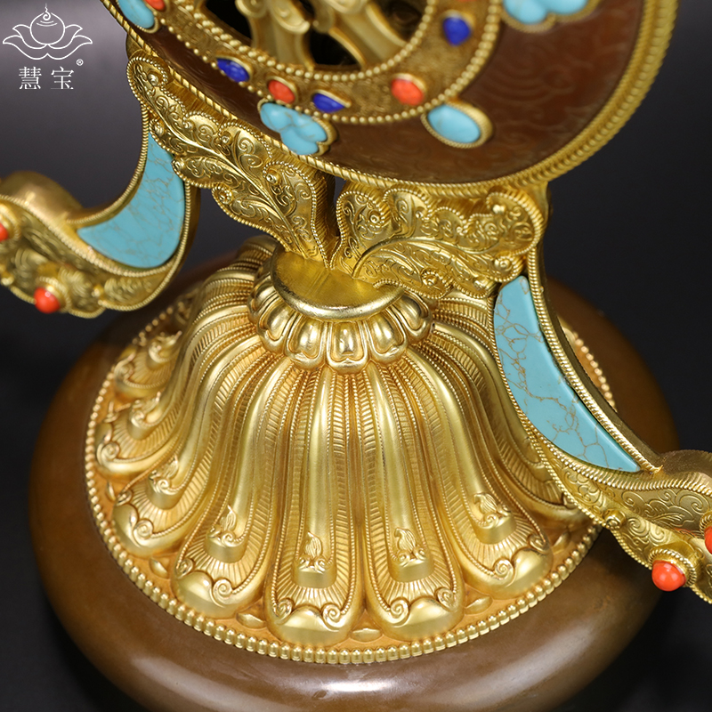 Huibao Buddha wheel King Qizheng eight treasures B section gold wheel Tibetan Tantric Buddhist offering Pure Brass Falun large ornament