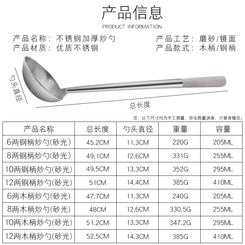 8 Two wooden handle frying spoons (thick handle) (suitable for home cooks) 8 Two steel handle frying spoons(thick handle)(suitable for home cooks) 10 Two wooden handle frying spoons(thick handle) (suitable for home cooks) 10 Two wooden handle frying spoons (thick handle) (suitable for home cooks) 10 Two wooden handle frying spoons (thick handle) (suitable for home cooks)