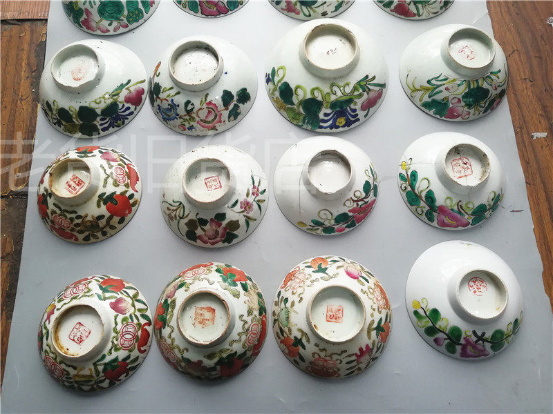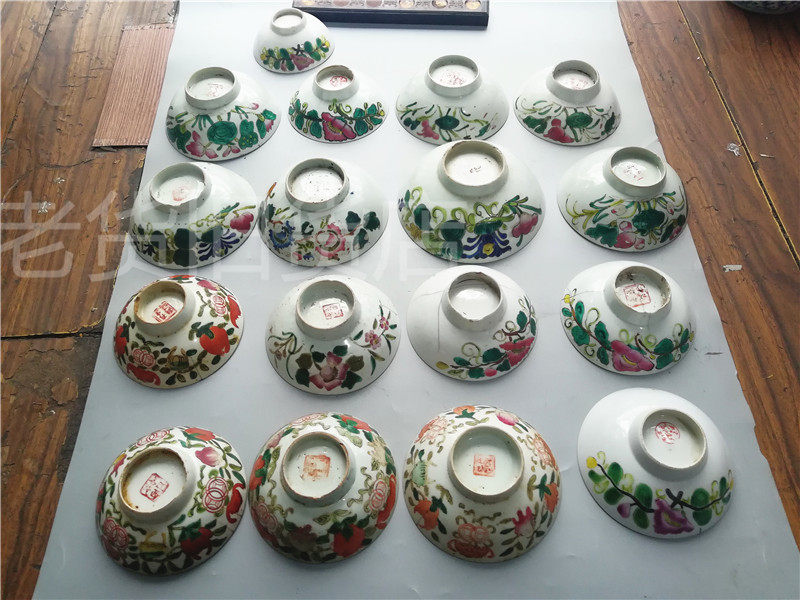 Fake one-to-lose ten bag old bag real door opener Old late Qing Republic of China Pink large bowl of random shipping single price with imperfections