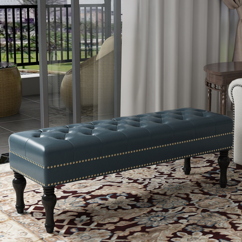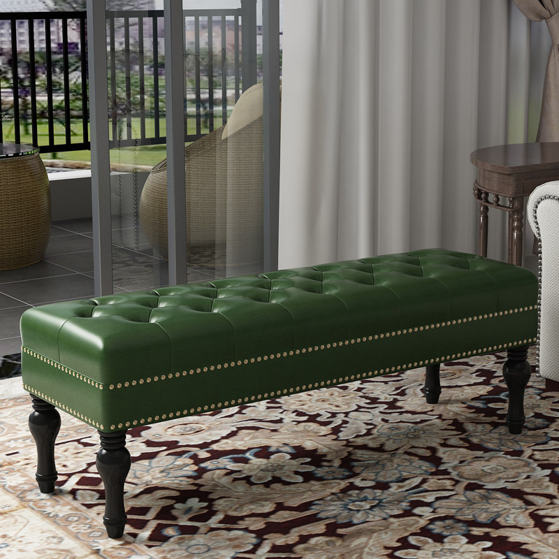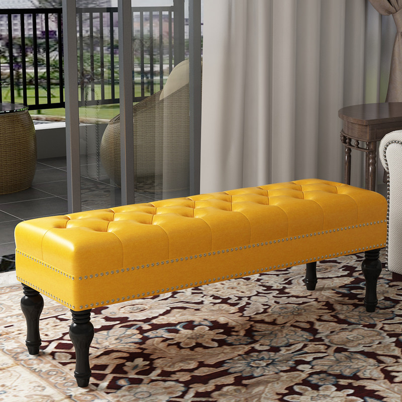 European-style shoe stool solid wood bench fashion retro sofa stool long bed end stool multi-functional locker room leather stool