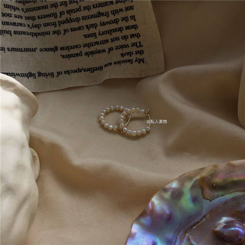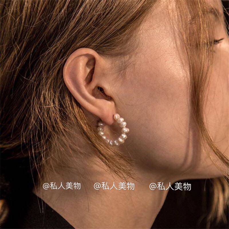 Simple and lukewarm style personality Baukin natural freshwater pearl knotted lap ring hollow earrings female earrings