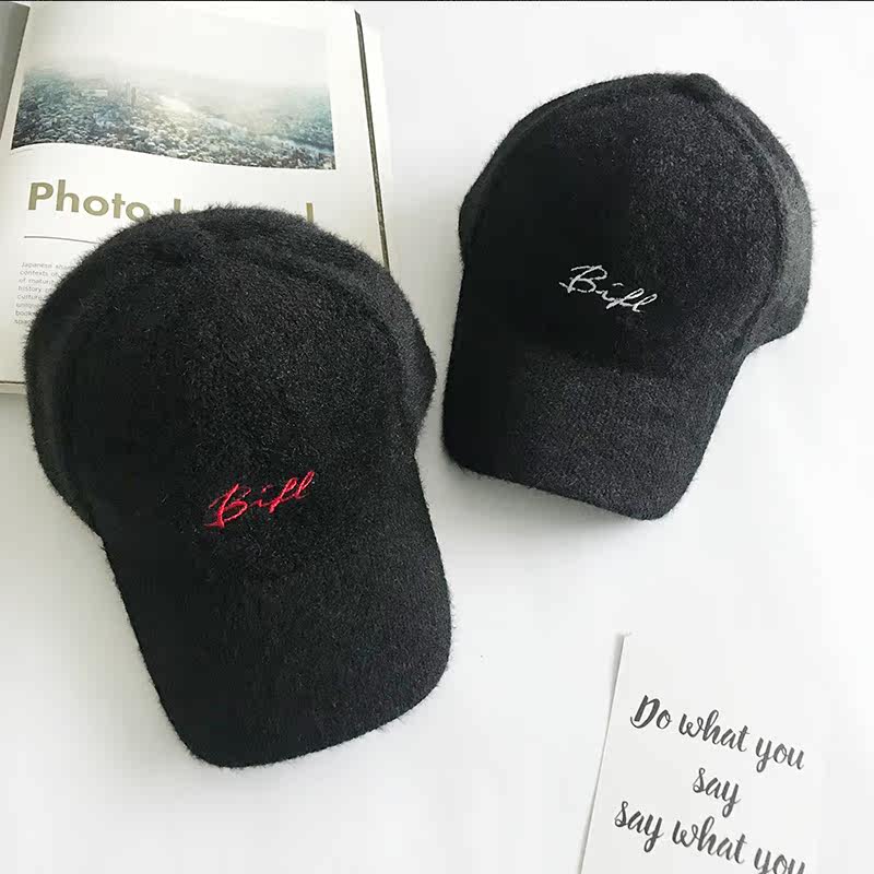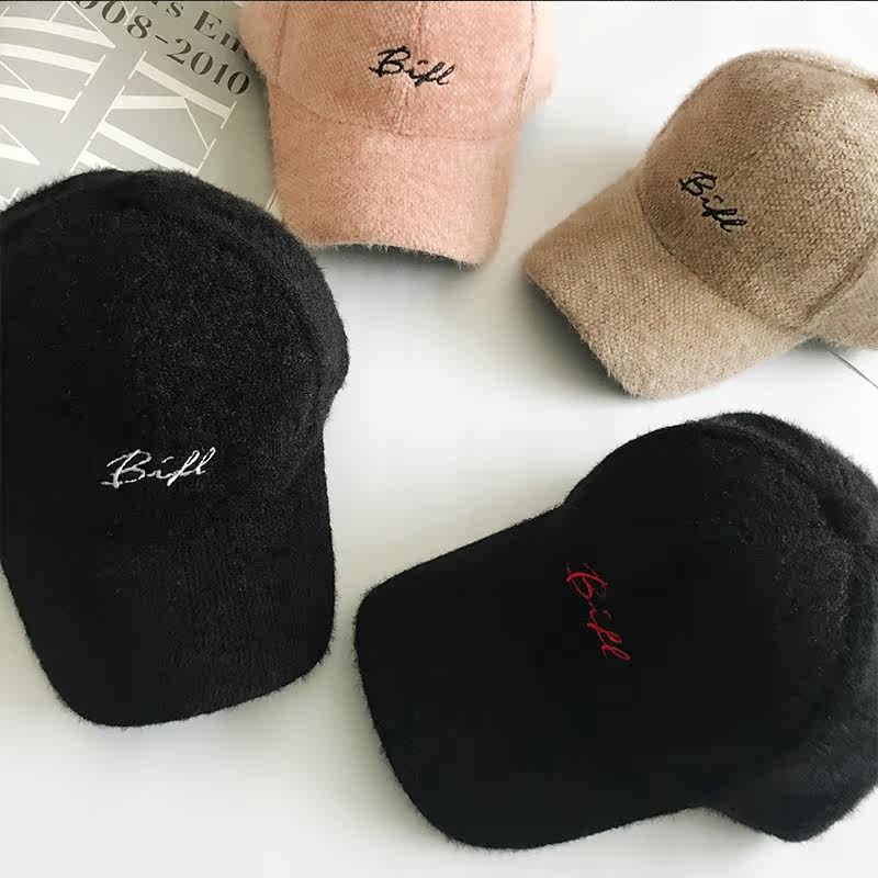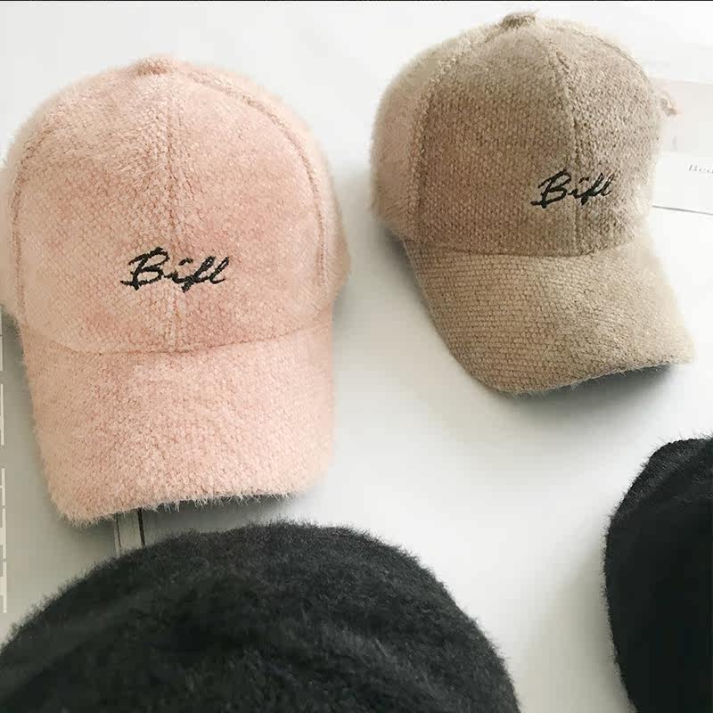 VOGANA Cannes Second Store New Year's Cute Warm Furry Embroidered Letter Baseball Cap Large Head Circumference Adjustable