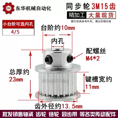 Synchronous wheel Pulley 3M15 tooth inner hole 4 5 6 6 35 8 tooth outer diameter 13 56 tooth width 11 Finishing