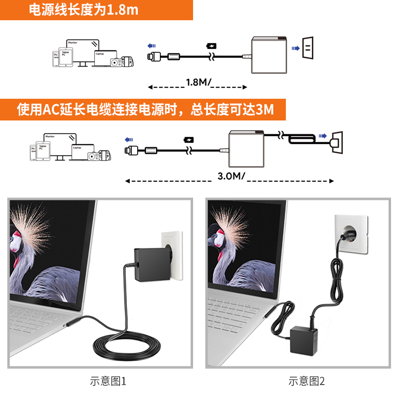Microsoft tablet power surfacePro5 6 7 8 book Microsoft computer charger charging line portable