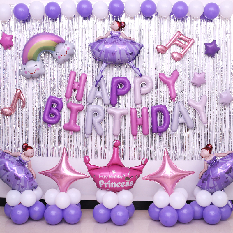 Children baby birthday decoration package Ballet girl theme party dress up background wall aluminum film balloon