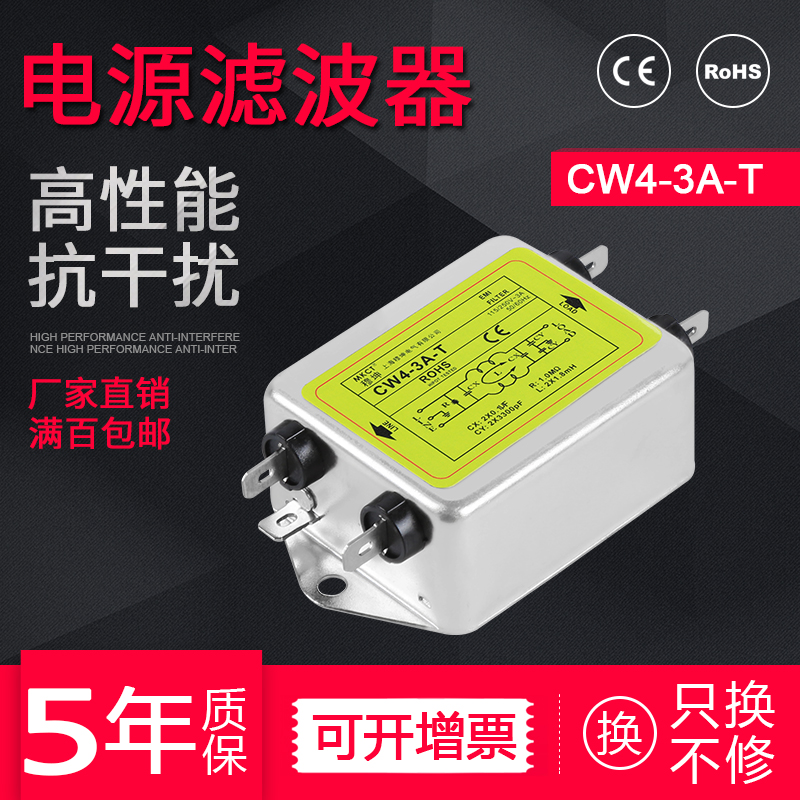High frequency EMI power filter 220V anti-interference CW4T3A6A10A20A30A noise purifier mask machine
