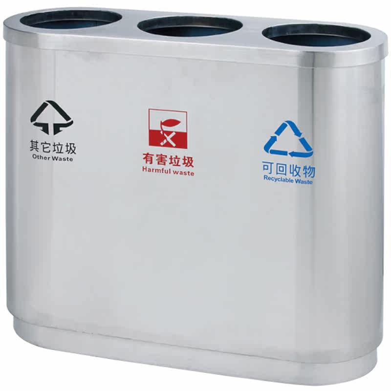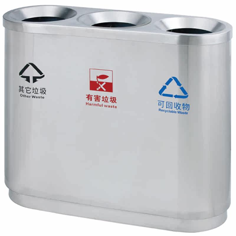Stainless steel triptych indoor classification environmentally-friendly trash can community park Tube mall Rectangular Sorted Fruit Leather Case