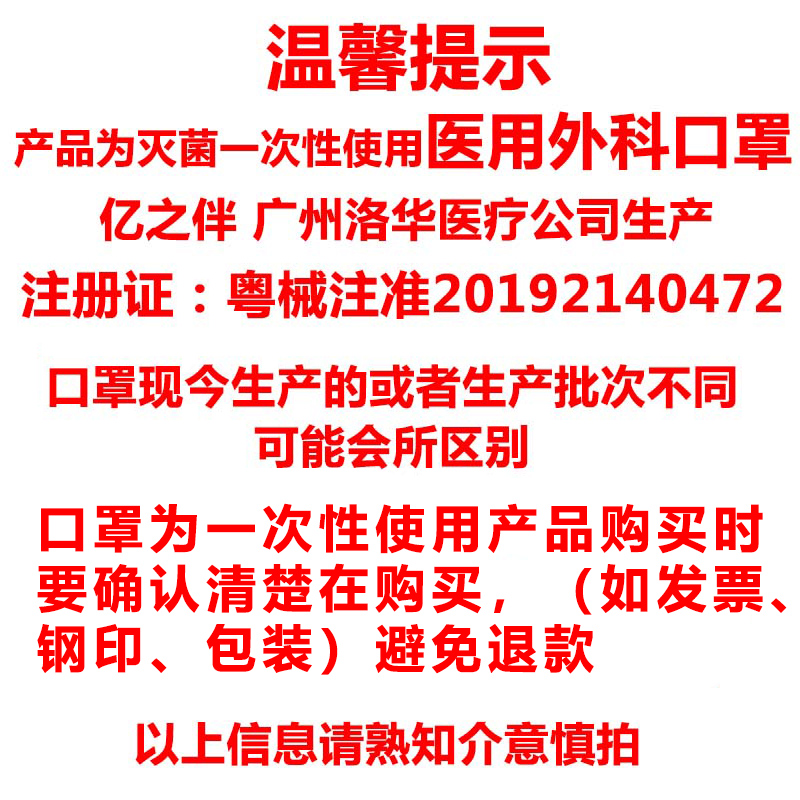 Guangzhou Lohua one-off use of medical surgical mask three-layer unwoven cloth sterilization thickened mask