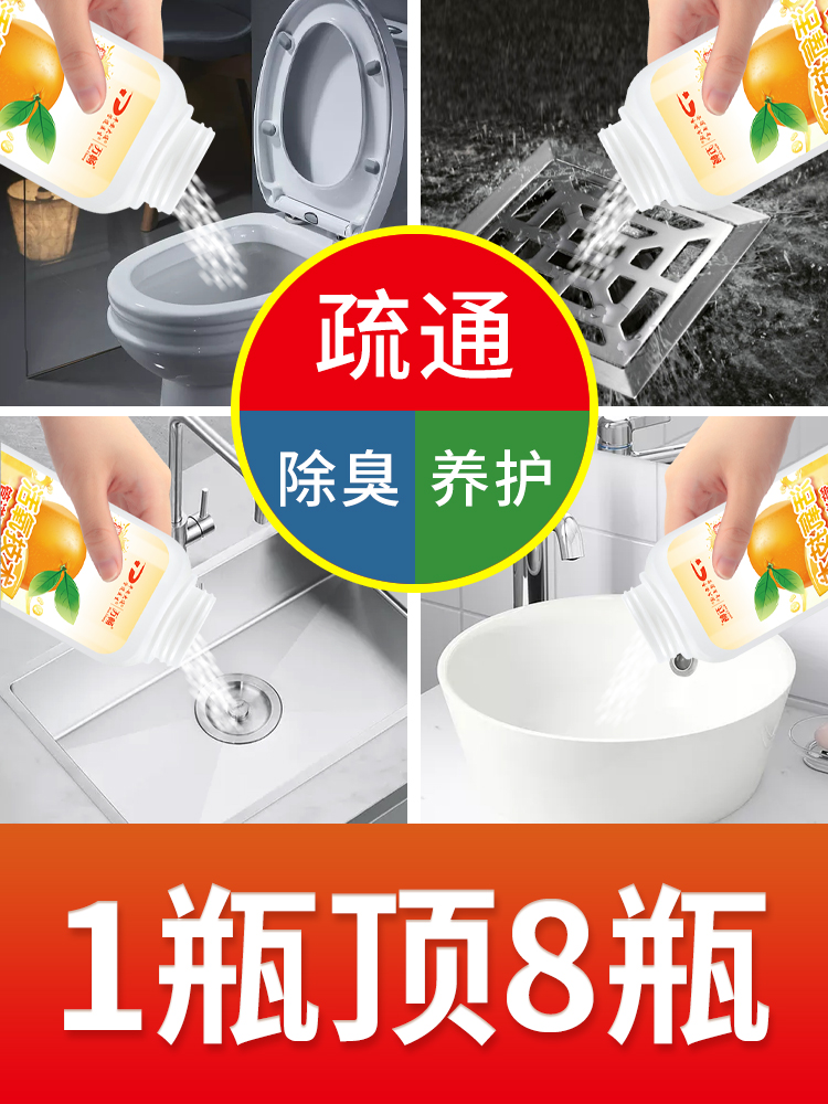 Pipe dredging agent through the sewer toilet Kitchen floor drain toilet corrosion powder artifact strong dissolution oil decomposition