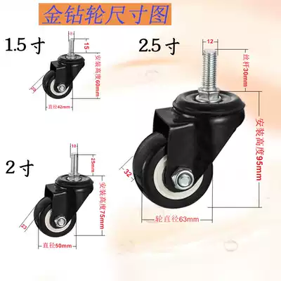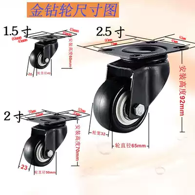 Caster 2 inch 1 5 inch 2 5 inch universal wheel wheel with brake Black screw caster Flat caster Gold diamond wheel