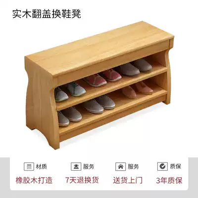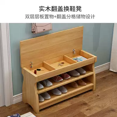 All solid wood shoe stool storage stool home door flip shoe cabinet type three-layer large size can sit on Chinese shoes