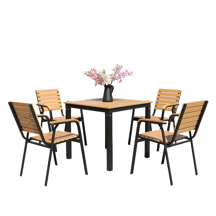 Yuguiren outdoor plastic wood tables and chairs open-air balcony leisure coffee shop milk tea shop garden courtyard solid table and chair combination