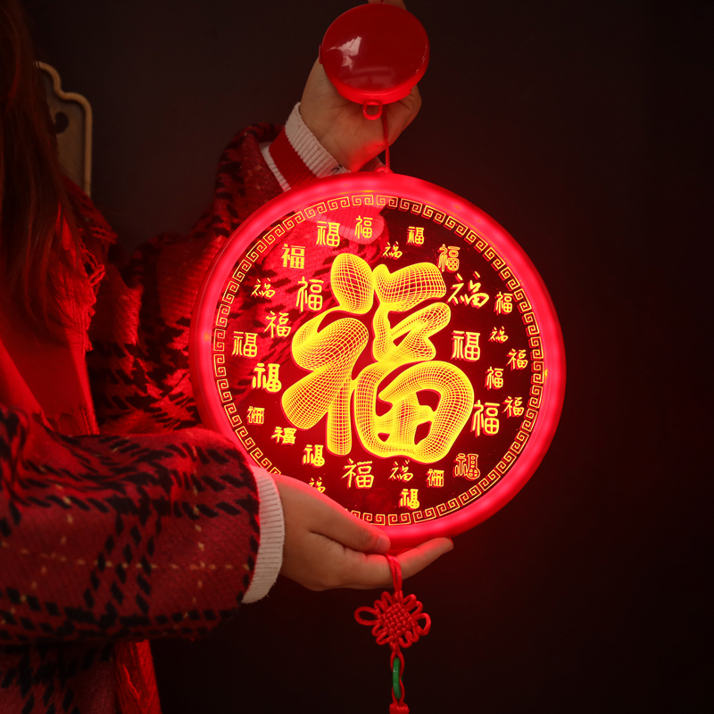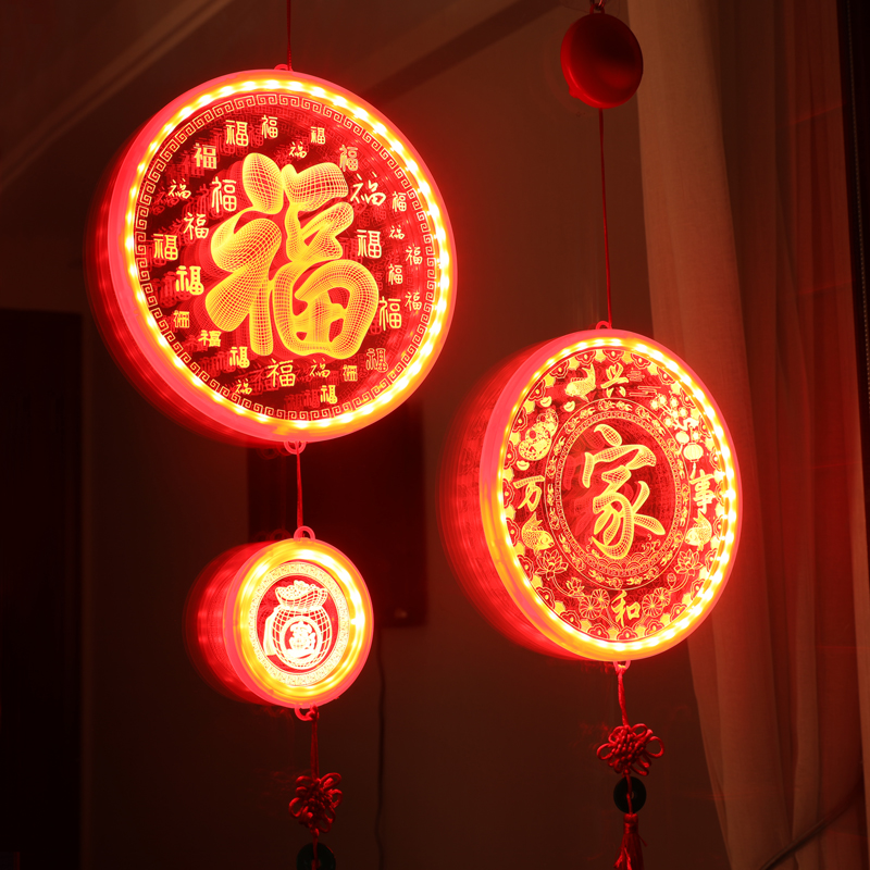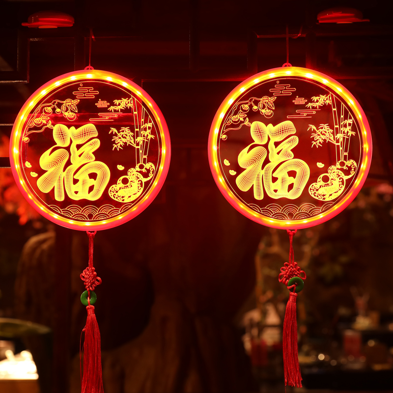 The New Year 2023 Rabbit New Year Decoration Hanging Light Scene is arranged inside the door