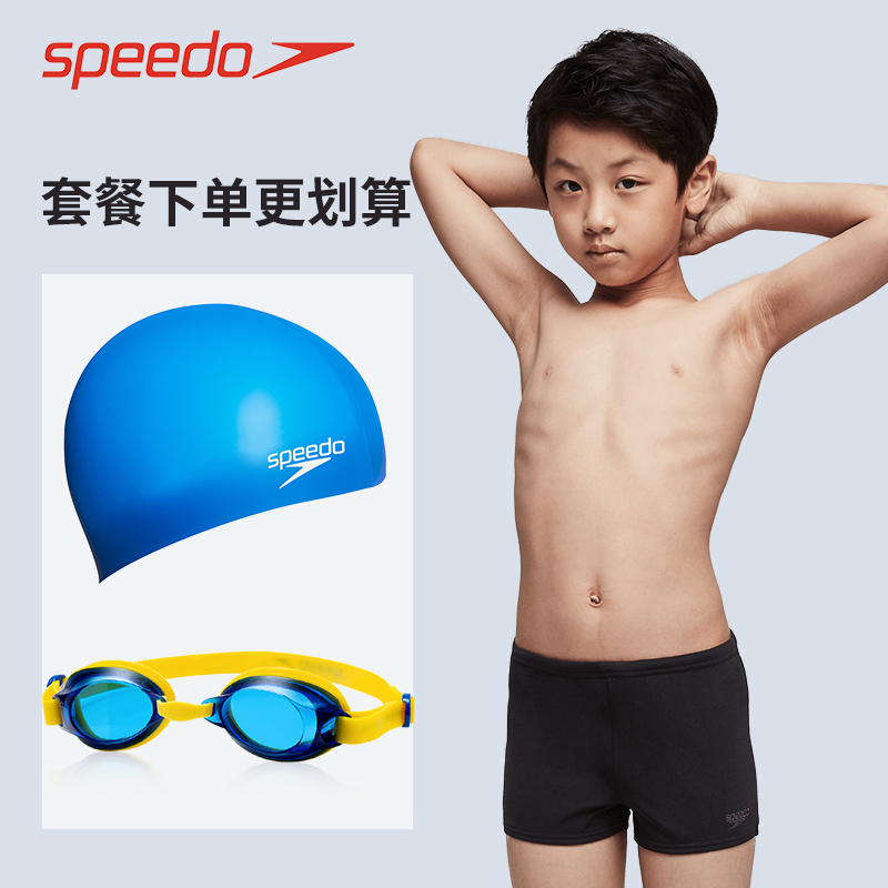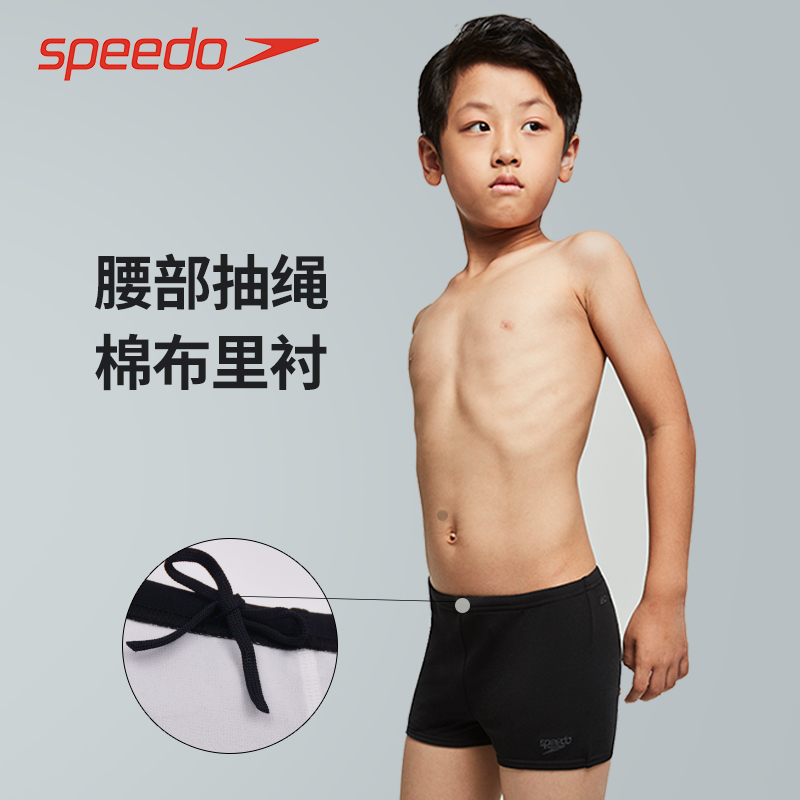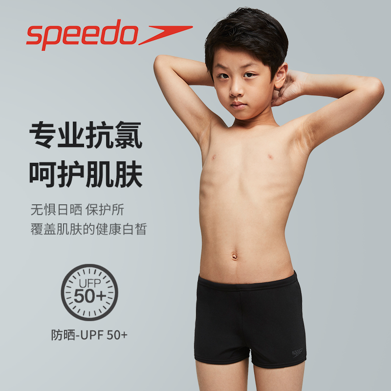 speedo children's boxer swimming trunks boys professional training solid color medium and large children's anti-chlorine quick-drying youth swimming trunks