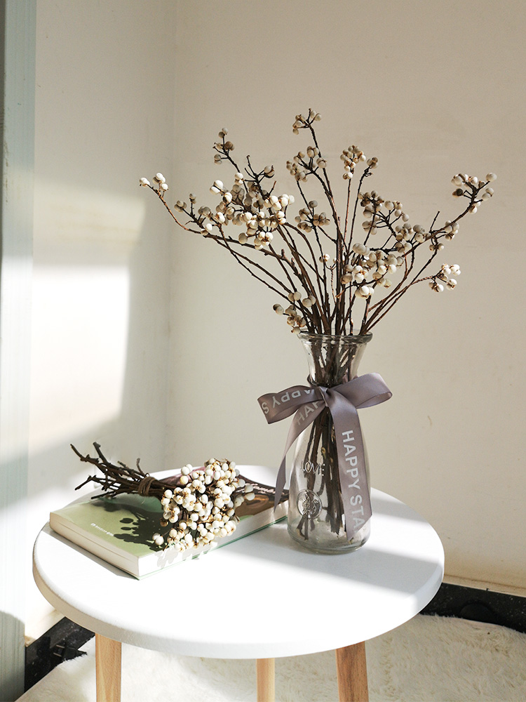 Small white fruit dried flower bouquet decoration pendulum decoration pearl barley flower bedroom living room flower arrangement ins small frescoed home furnishing