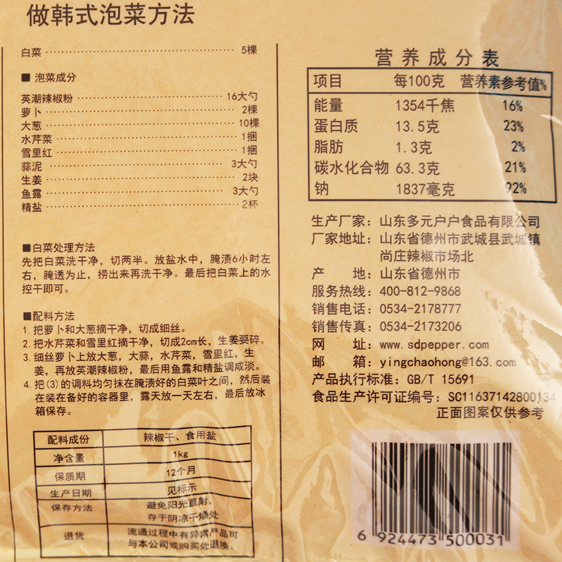 Yingchao multi-household coarse chili powder 1kg chili noodles barbecue seasoning powder Korean cuisine spicy cabbage