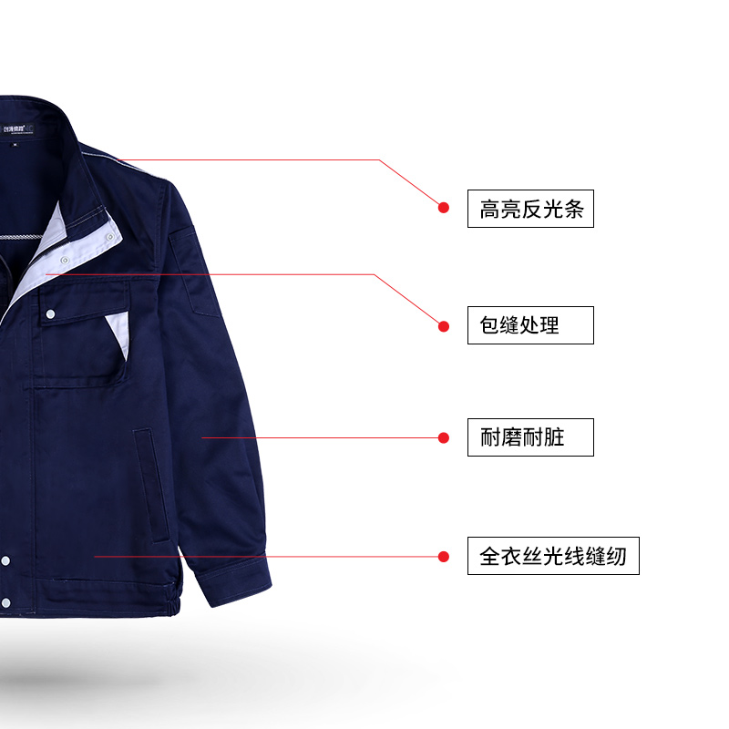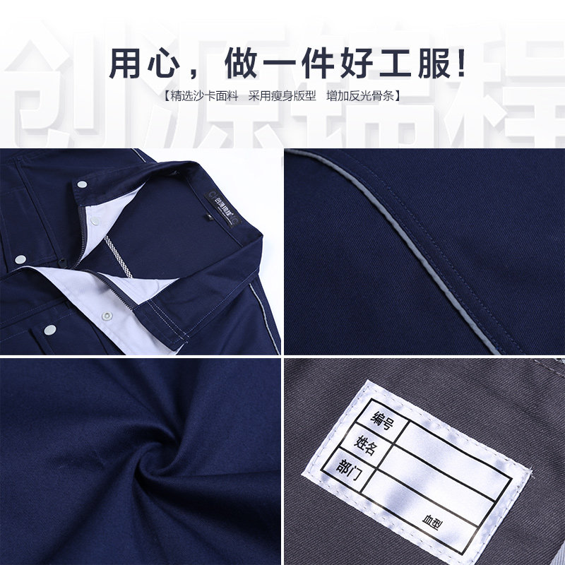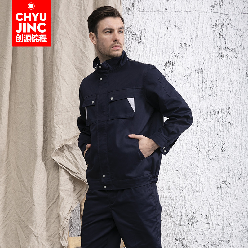 Chuangyuan Jincheng spring and autumn work clothes suit men wear-resistant and dirty labor protection clothing factory workshop reflective strip work clothes custom