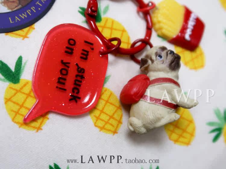 Shop over 50] Pet Pug Puppy Ornament Red Backpack French Fries Cute Dog Keychain