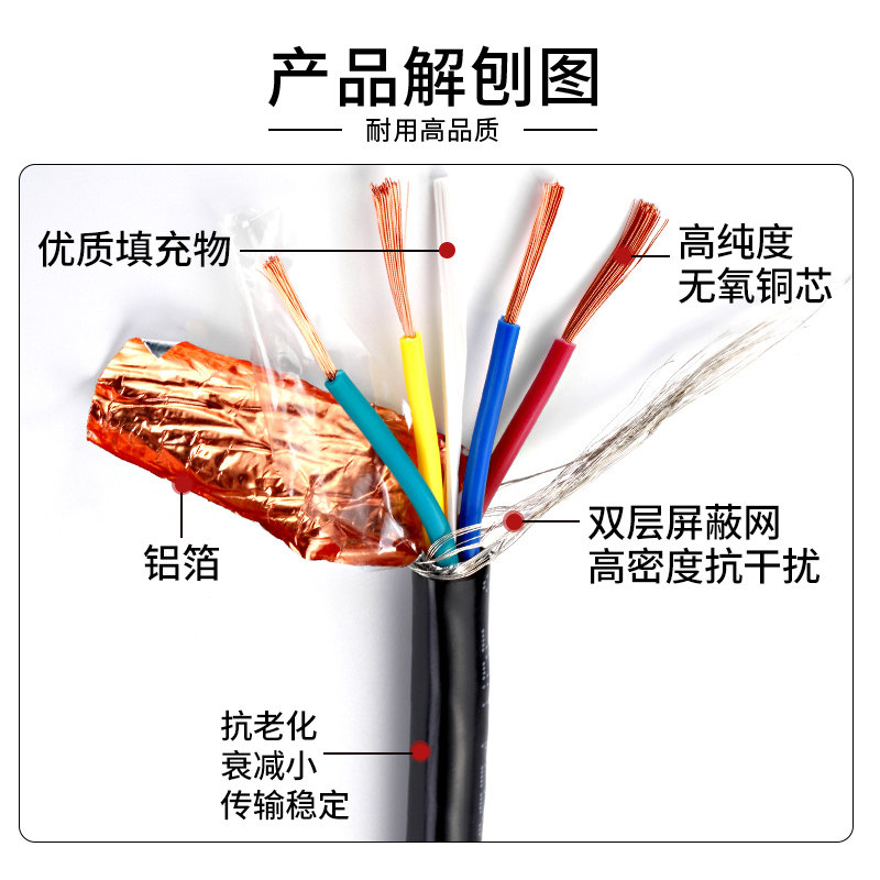 Pure copper shielded wire RVVP2 Core 3 Core 4 Core 5 0 0 5 3 0 75 1 5 Audio Control Signal Cable