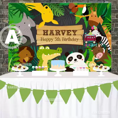 Forest animal tiger lion boy birthday party dessert table background wall poster custom name banner