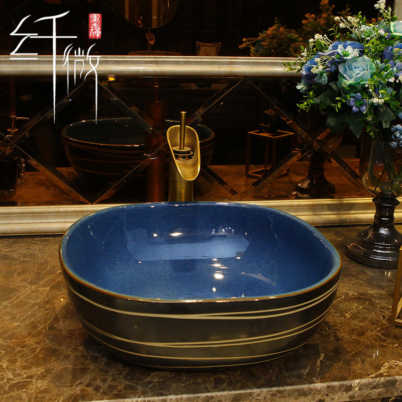 Industrial square countertop basin oval washbasin basin retro home powder room washbasin square ceramic basin