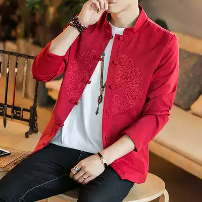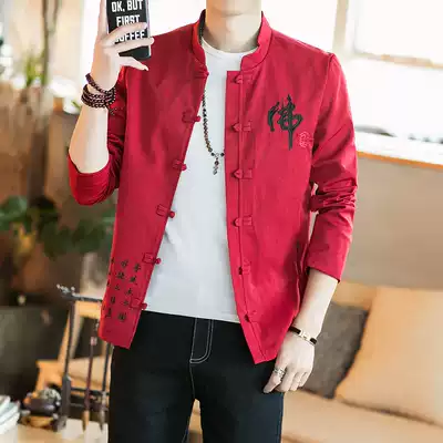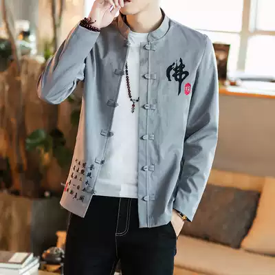 Tang suit jacket men's Chinese style collar jacket men's spring and autumn Hanfu buckle embroidery Chinese coat Buddha men's clothing
