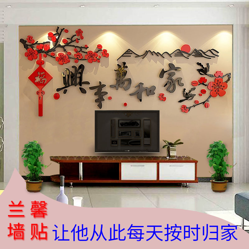 Acrylic 3d three-dimensional wall stickers home and all things Xing living room sofa TV background wall Chinese style self-adhesive decorative painting