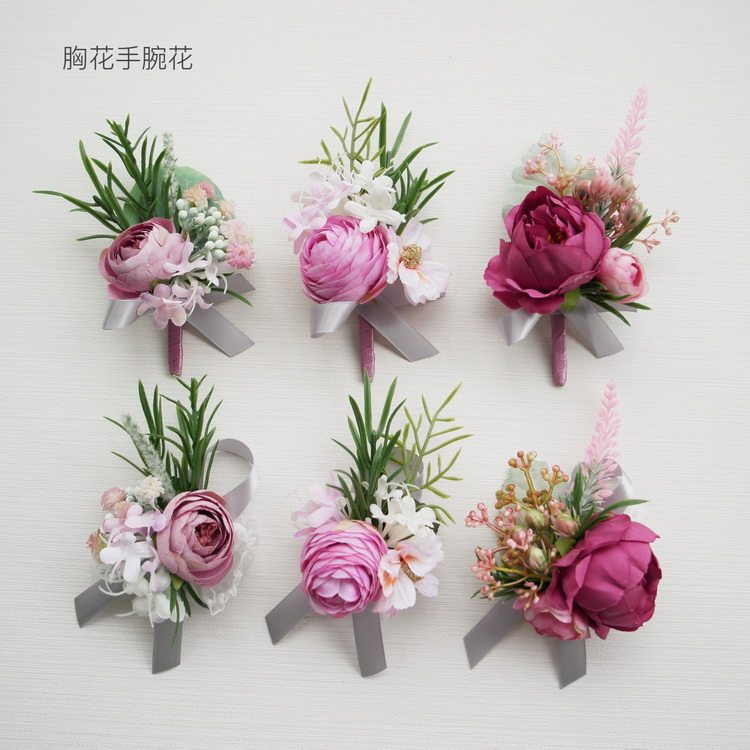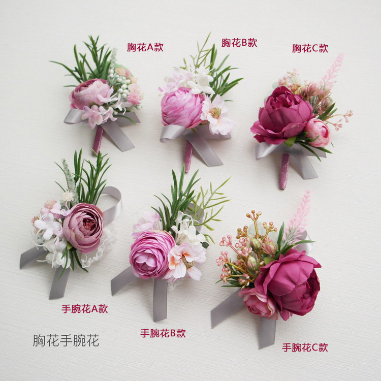 Pink Ensemble Chest Flowers Wrist Flowers Bridal Sisters Emulation Flowers Wedding Photography Props Silk Silk Bouquet Groom Bridegroom